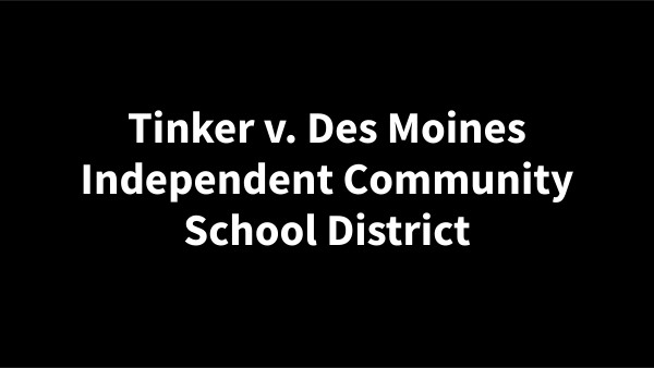 Khan, R. (2023, September 19). Symbolic Speech. Free Speech Center at Middle Tennesse University. https://firstamendment.mtsu.edu/article/symbolic-speech/ Oyez. (n.d.). Tinker v. Des Moines Independent Community School District. https://www.oyez.org/cases/1968/21 Shivaramakrishnan, A. & Patel, R. (2023, May 3). 3.14 Required Supreme Court Cases. Fiveable. https://library.fiveable.me/ap-gov/unit-3/required-scotus-cases/study-guide/rWq8ijXsVxicWG4S0iHQ