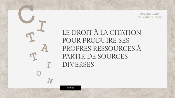 Ce droit à la citation permet de mettre en valeur son travail ainsi que permettre à autrui de vérifier les informations de nos productions. En citant le travail d’autrui, on évite le plagiat.De plus citer un autre travail permet d’avancer des arguments et justifier notre production.la citation permet d'appuyer un argument en lui donnant de la pertinence et une valeur scientifique « Une citation est un passage tiré d'un ouvrage pour illustrer ou appuyer ce que l'on avance dans un travail. On doit absolument en indiquer la source. Cette obligation vaut pour toutes les sources : livres, articles de périodiques, encyclopédies, documents audiovisuels, pages Internet, etc. »