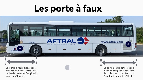 Le porte à faux avant est la distance comprise entre l'axe de l'essieu avant et l'amplomb avant du véhicule