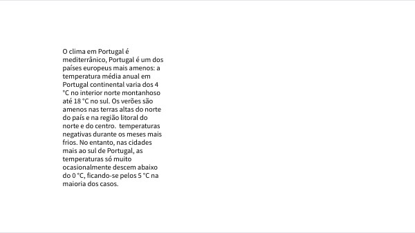 O clima em Portugal é mediterrânico, Portugal é um dos países europeus mais amenos: a temperatura média anual em Portugal continental varia dos 4 °C no interior norte montanhoso até 18 °C no sul. Os verões são amenos nas terras altas do norte do país e na região litoral do norte e do centro. temperaturas negativas durante os meses mais frios. No entanto, nas cidades mais ao sul de Portugal, as temperaturas só muito ocasionalmente descem abaixo do 0 °C, ficando-se pelos 5 °C na maioria dos casos.