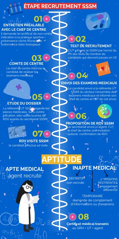 Le candidat envoi a la référente UT SSSM du secteur l'ensemble des examens médicaux et informe son chef de centre et l'UT de cet envoi