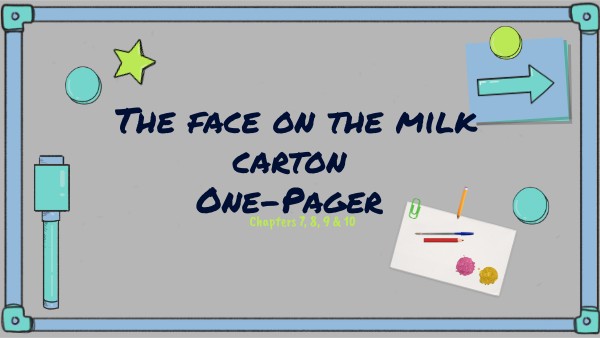 For your one-pager, you will record key information about chapters 7 to 10 of the novel we are reading. This will take approximately 50 minutes to rough draft. Then, you will work for another 2 classes on your final copy. time will be given in class to complete the work.. Most of the work should be completed during class.