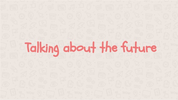1 James is standing on the side of the pool. He is going to jump in.2 Look at those dark clouds. It is going to snow.3 I think Barcelona will win the Champions League this year.4 I’m sure Jane will like the present you’ve bought for her.5 This time next year we will be in France.6 ‘Why are you turning on the radio?’ ‘I am going to listen to the news.’7 ‘What are you doing later?’ ‘I am going to play basketball.’
