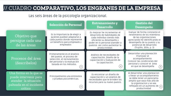 Cuadro comparativo de las 6 áreas de la psicología organizacional