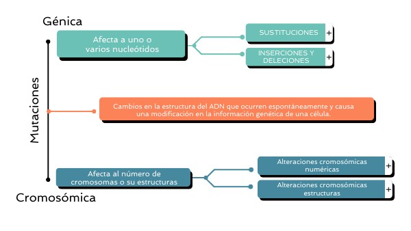 Cambios en la estructura del ADN que ocurren espontáneamente y causa una modificación en la información genética de una célula.