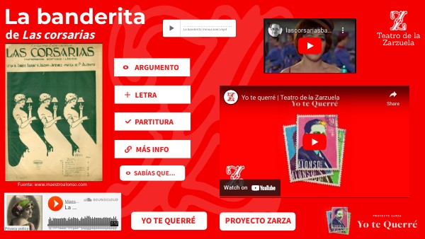 La banderita es uno de los números musicales que aparecen en Yo te querré, la 7ª propuesta del Proyecto Zarza (zarzuela por jóvenes y para jóvenes del Teatro de la Zarzuela)