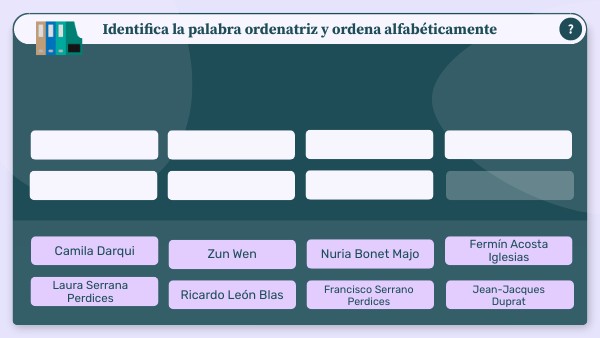 Identifica la palabra ordenatriz y ordena alfabéticamente