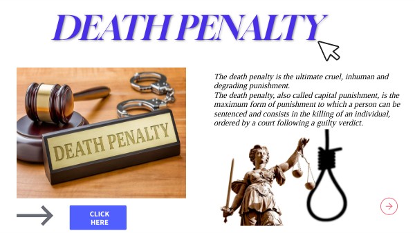 The death penalty is the ultimate cruel, inhuman and degrading punishment. The death penalty, also called capital punishment, is the maximum form of punishment to which a person can be sentenced and consists in the killing of an individual, ordered by a court following a guilty verdict.