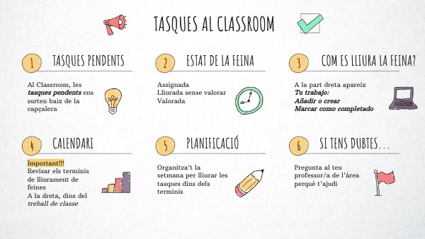 Important!!!Revisar els terminis de lliurament de feines A la dreta, dins del treball de classe