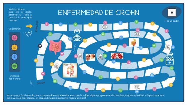 Instrucciones: Dale clic al dado, arrastra tu ficha y avanza lo más que puedas.