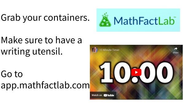 Grab your containers. Make sure to have a writing utensil. Go to app.mathfactlab.com