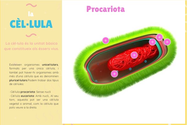 Existeixen organismes unicel·lulars, formats per una única cèl·lula, i també pot haver-hi organismes amb més d'una cèl·lula que es denominen pluricel·lulars.Podem trobar dos tipus de cèl·lules:· Cèl·lula procariota: Sense nucli · Cèl·lula eucariota: Amb nucli,. Al seu torn, aquesta pot ser una cèl·lula vegetal o animal, com la cèl·lula que pots veure a la dreta.
