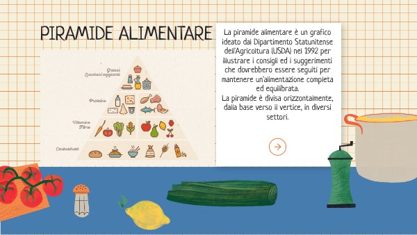 La piramide alimentare è un grafico ideato dal Dipartimento Statunitense dell'Agricoltura (USDA) nel 1992 per illustrare i consigli ed i suggerimenti che dovrebbero essere seguiti per mantenere un'alimentazione completa ed equilibrata.La piramide è divisa orizzontalmente, dalla base verso il vertice, in diversi settori.