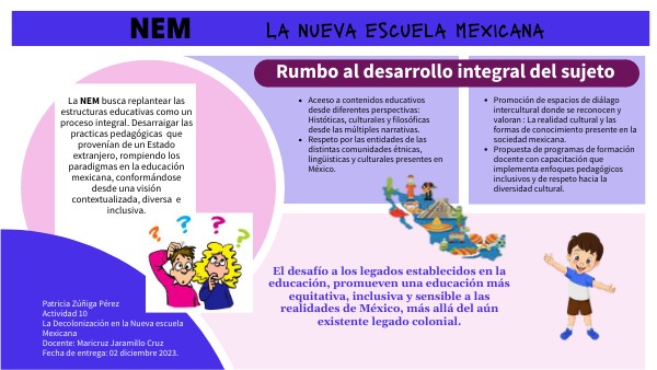 Patricia Zúñiga PérezActividad 10 La Decolonización en la Nueva escuela Mexicana Docente: Maricruz Jaramillo Cruz Fecha de entrega: 02 diciembre 2023.