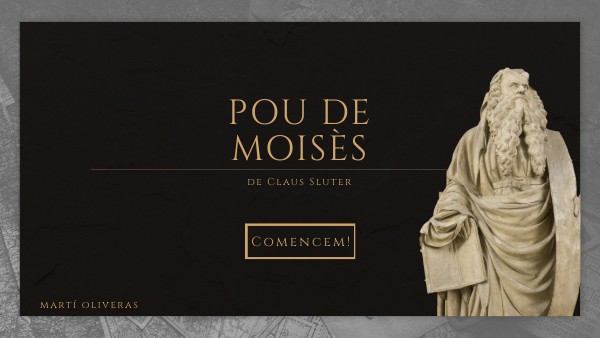 a Moisès, se’l representa amb unes banyes i la barba encrespada. Porta en una mà les Taules de la Llei i a l’altra un cartell amb un text que diu: <A la nit, la multitud d’Israel el matarà, al fill del xai>.