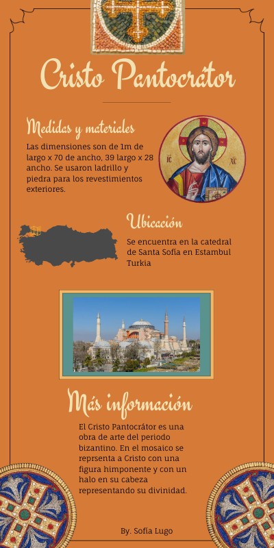 El Cristo Pantocrátor es una obra de arte del periodo bizantino. En el mosaico se reprsenta a Cristo con una figura himponente y con un halo en su cabeza representando su divinidad.