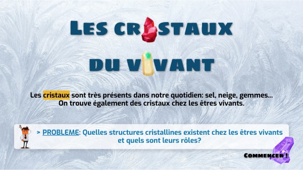 Activité en enseignement scientifique sur les cristaux chez les êtres vivants (Genially initialement réalisé par "Sophie SVT", retravaillé ensuite, un grand merci pour ce travail !)