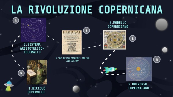 MODELLO ELIOCENTRICO → Sole al centro dell’Universo IPOTESI FONDAMENTALI: - rotazione della Terra attorno al proprio asse - rivoluzione attorno al Sole in un anno - i pianeti orbitano attorno al Sole INFLUSSO ARISTOTELICO-TOLEMAICO: - universo è chiuso e delimitato - orbite dei pianeti sono circolari e si muovono di moto uniforme