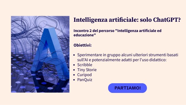 - Sperimentare in gruppo alcuni ulteriori strumenti basati sull'AI e potenzialmente adatti per l'uso didattico: