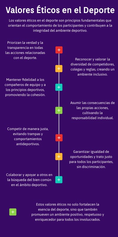 Estos valores éticos no solo fortalecen la esencia del deporte, sino que también promueven un ambiente positivo, respetuoso y enriquecedor para todos los involucrados.