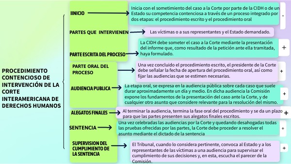 Inicia con el sometimiento del caso a la Corte por parte de la CIDH o de un Estado su competencia contenciosa a través de un proceso integrado por dos etapas: el procedimiento escrito y el procedimiento oral