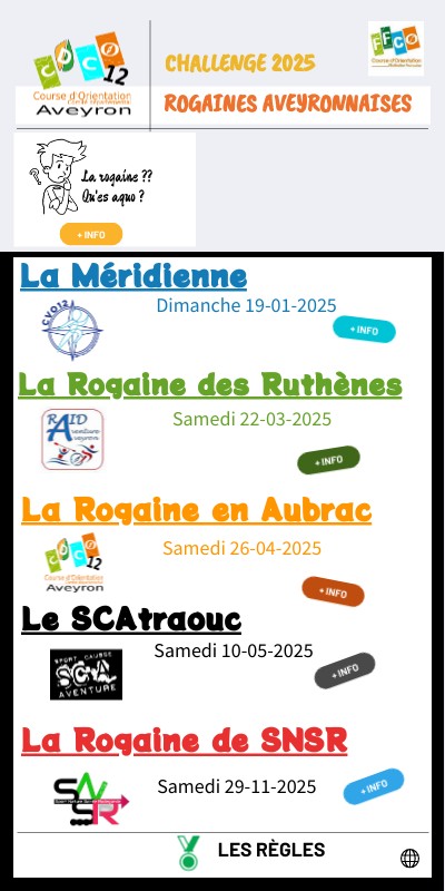 Chaque Rogaine conserve son règlement et son fonctionnement propre. Le nombre de points mis en jeu sera quasiment identique pour toutes les épreuves (environ 400).