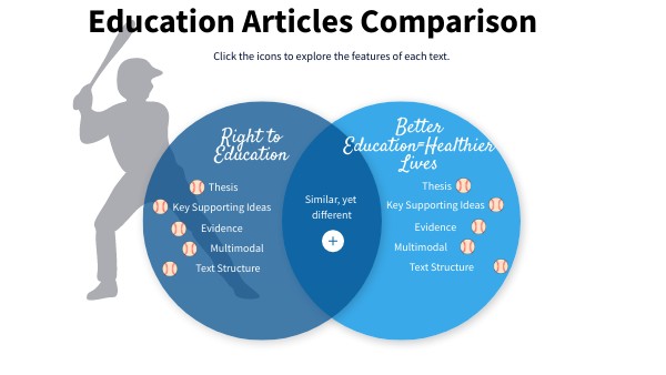 One similarity is the fact that both are regarding education as an important and essntial part of people's lives. Both also imply that education can be the difference between life and death in the sense that no education can result in a sad, short life while a good education can result in a happy, healthy, and long life. Both also have many differences; for example, one mentions how a good education can give you a long healthy life with a good job and good family. The other talks about how people who never get an education often don't learn the essential life skills they need to live and usually dont end up living that long.
