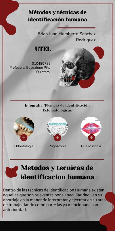 Dentro de las tecnicas de identificacion Humana existen ,aquellas que son relevantes por su peculiaridad , en su abordaje en la maner de interpretar y ejecutar en su area de trabajo dando como parte las ya mencionada con anterioridad.