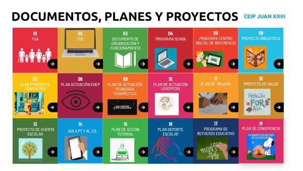 En este Genially presentamos los distintos DOCUMENTOS, PLANES Y PROYECTOS de nuestro Centro.