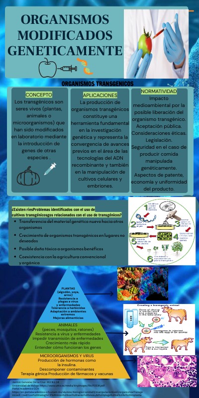 Jazmin Gonzalez De La Cruz 202 N.L:14Universidad de Malaga https://www.uma.es/media/tinyimages/file/FOGM.pdf Portal Academico CCH https://e1.portalacademico.cch.unam.mx/alumno/biologia1/unidad3/manipulacionGen1/organismosTransgenicos#:~:text=Los%20transg%C3%A9nicos%20son%20seres%20vivos,de%20plaga%20se%20le%20implanta