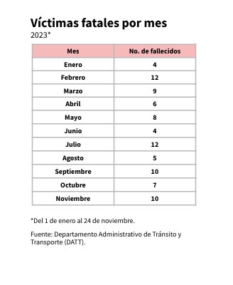 Fuente: Departamento Administrativo de Tránsito y Transporte (DATT).