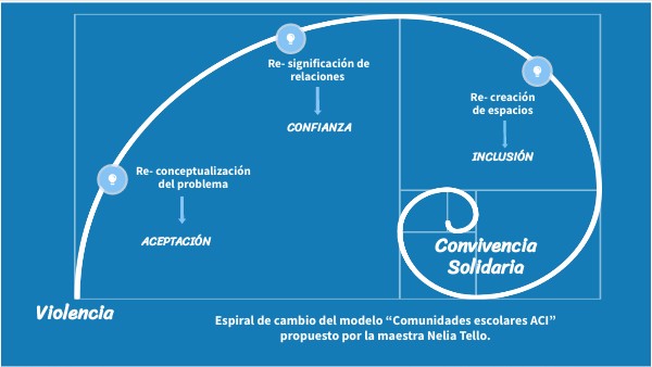 Espiral de cambio del modelo “Comunidades escolares ACI” propuesto por la maestra Nelia Tello.