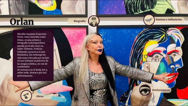 Mireille Suzanne Francette Porte, más conocida como Orlan, es una artista y fotógrafa contemporánea nacida en el año 1947 en Saint-Étienne, Francia. Defiende y practica el arte feminista, sin embargo ha sido muy criticada por incluir en sus trabajos la práctica de la cirugía estética, en vez de condenarla. Se enmarca en el Body Art y, sobre todo, destaca por sus performances.