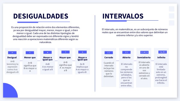 Es una proposición de relación entre dos elementos diferentes, ya sea por desigualdad mayor, menor, mayor o igual, o bien menor o igual. Cada una de las distintas tipologías de desigualdad debe ser expresada con diferente signo y tendrá una reacción a operaciones matemáticas diferente según su naturaleza.