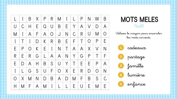 mots mêlés de Noël