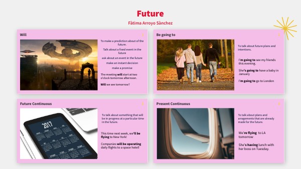 To make a prediction about of the future. Talk about a fixed event in the future ask about an event in the future make an instant decision make a promise