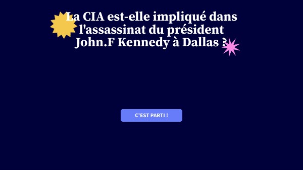 -Biographie de John.F Kennedy -Explication du drame à Dallas -Lien entre la CIA et l'assassinat -Raison du blocage de la déclassification des documents -Complot qui ne fonctionne aps -Impact de cette théorie