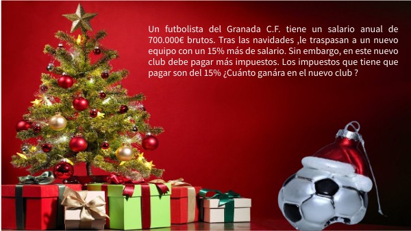 Un futbolista del Granada C.F. tiene un salario anual de 700.000€ brutos. Tras las navidades ,le traspasan a un nuevo equipo con un 15% más de salario. Sin embargo, en este nuevo club debe pagar más impuestos. Los impuestos que tiene que pagar son del 15% ¿Cuánto ganára en el nuevo club ?