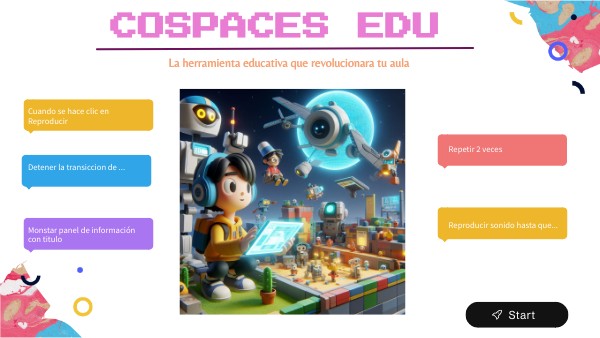Con la plataforma CoSpaces Edu, se simplifica la creación y codificación de animaciones, relatos, juegos y diversas experiencias que pueden disfrutarse mediante realidad aumentada (AR), realidad virtual (VR) o visualización de 360º directamente en el navegador. Además, presenta dos funcionalidades adicionales: