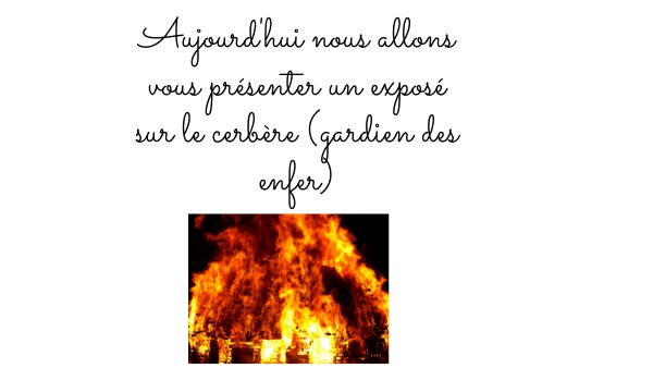 Aujourd'hui nous allons vous présenter un exposé sur le cerbère (gardien des enfer)