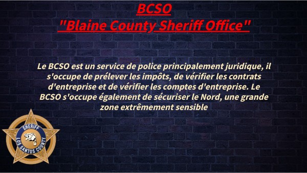 Bienvenue dans la BCSO !
