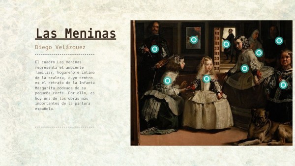 El cuadro Las meninas representa el ambiente familiar, hogareño e íntimo de la realeza, cuyo centro es el retrato de la Infanta Margarita rodeada de su pequeña corte. Por ello, es hoy una de las obras más importantes de la pintura española.