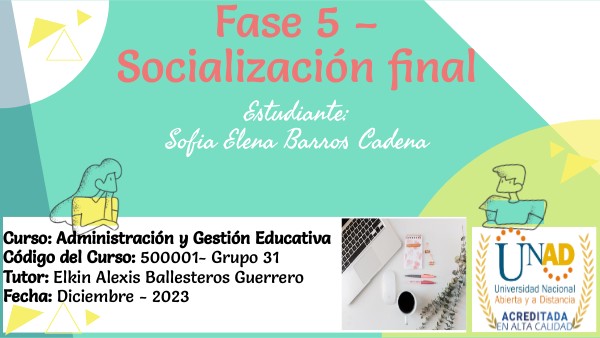 Curso: Administración y Gestión EducativaCódigo del Curso: 500001- Grupo 31 Tutor: Elkin Alexis Ballesteros Guerrero Fecha: Diciembre - 2023