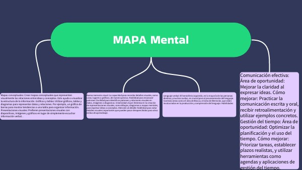 Mapas conceptuales: Crear mapas conceptuales que representen visualmente las relaciones entre ideas y conceptos. Esto ayuda a visualizar la estructura de la información. Gráficos y tablas: Utilizar gráficos, tablas y diagramas para representar datos y relaciones. Por ejemplo, un gráfico de barras para mostrar tendencias o una tabla para organizar información. Presentaciones visuales: Prefieren presentaciones visuales con diapositivas, imágenes y gráficos en lugar de simplemente escuchar información verbal. .