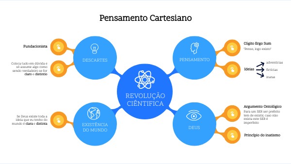 Coloca tudo em dúvida e só assume algo como sendo verdadeiro se for claro e distintio