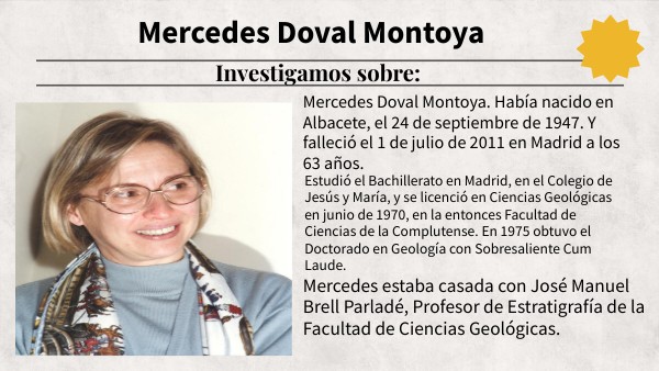 Mercedes Doval Montoya. Había nacido en Albacete, el 24 de septiembre de 1947. Y falleció el 1 de julio de 2011 en Madrid a los 63 años.