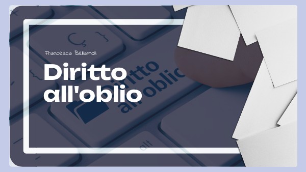 Il diritto all'oblio consiste nel diritto di una persona di essere dimenticata cancellando tutte le proprie informazioni sul web. Con informazioni intendiamo il cosidetto "web reputation" ovvero una sorta di carta d'identità digitale della persona. Questo diritto è stato riconosciuto attraverso l'approvazione del Regolamento UE 679/2016 noto come GDPR ( Regolemento Generale sulla Protezione dei Dati personali).