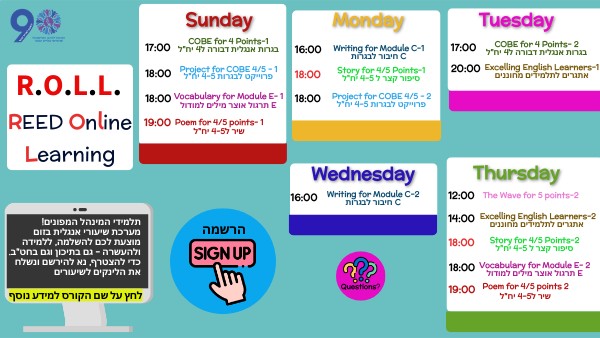 4-5 pt Bagrut students who need to complete one more poem can join Tziliaon Sundays and Thursdays to learn a poem, in a small group on Zoom.