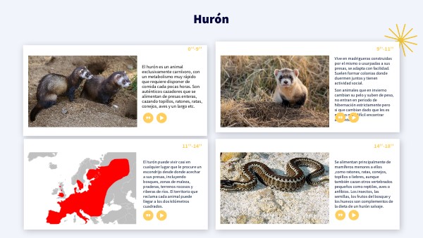 El hurón es un animal exclusivamente carnívoro, con un metabolismo muy rápido que requiere disponer de comida cada pocas horas. Son auténticos cazadores que se alimentan de presas enteras, cazando topillos, ratones, ratas, conejos, aves y un largo etc.