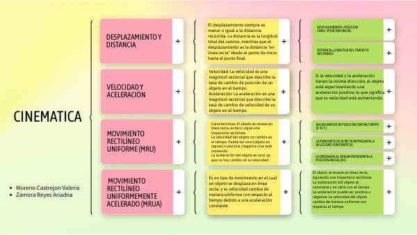 Velocidad: La velocidad es una magnitud vectorial que describe la tasa de cambio de posición de un objeto en el tiempo.Aceleración: La aceleración es una magnitud vectorial que describe la tasa de cambio de velocidad de un objeto en el tiempo.